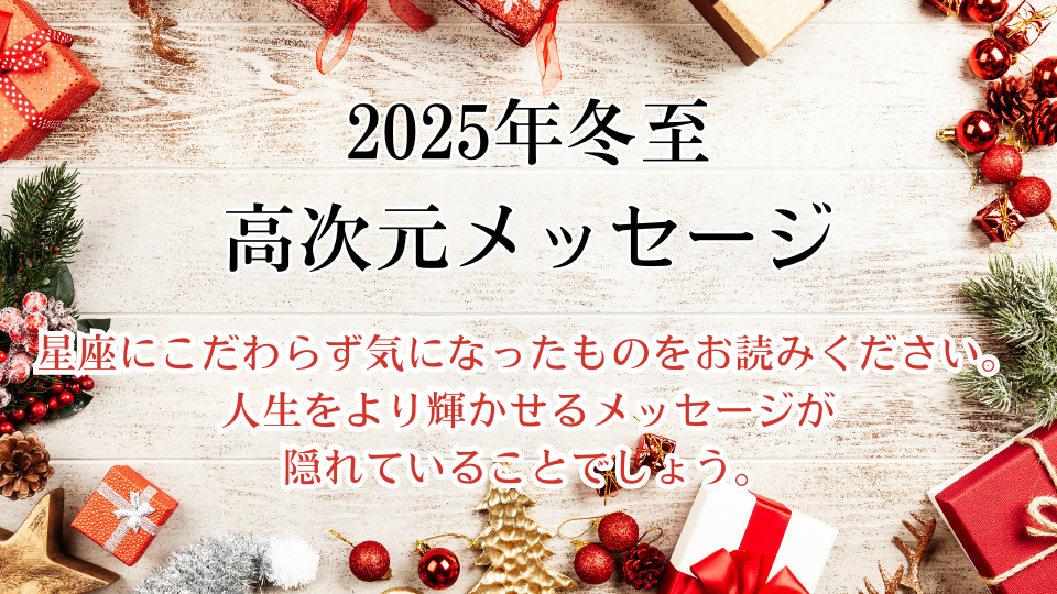 2025年 冬至の高次元メッセージ一覧 星で見るエネルギー予報 Twitter Facebook はてブ Pocket LINE コピー 2025.12.21 この記事は約1分で読めます。 2025年 冬至の高次元メッセージ星座一覧 激動だった2025年も冬です。 それぞれの星座の方に向けてのメッセージが届いていますが、別の星座へのメッセージの中にも、今の自分に響く内容があるかもしれません。 星座に拘らず、気になったものはものはすべて見てみてください。 あなたの人生を輝かせるヒントが隠れているかもしれません。